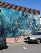 The Cannery Mural, commissioned by the Excel Systems Software Company for their building in Sidney. It depicts the original waterfront in the town of Sidney, the old cannery was replaced by