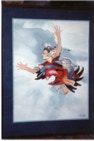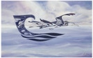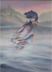 The Spirit with the painted face was modeled on a mask carved by Chief Tony Hunt and used in this painting with his generous permission.